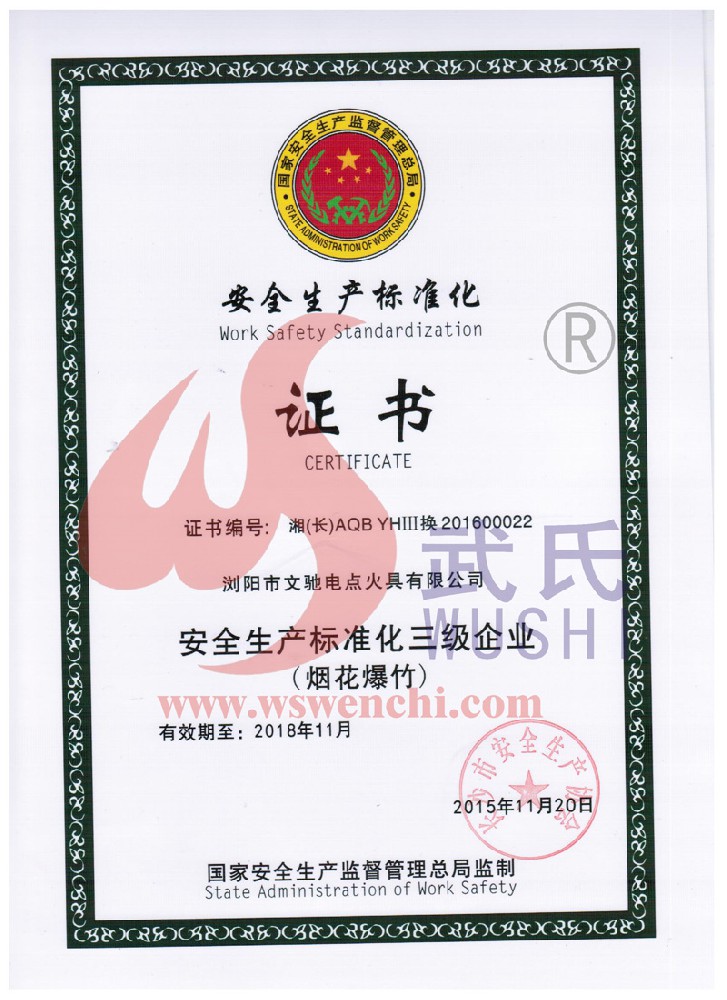 瀏陽市文馳電點火具有限公司(原培文電子點火器材廠),創(chuàng)建于1998年,是一家專業(yè)從事研制銷售電子點火產(chǎn)品的民營科技企業(yè),是我國第1枚煙花用電點火頭生產(chǎn)者,是《煙花爆竹電點火頭國標(biāo)》牽頭起草單位。公司位于中國“煙花之鄉(xiāng)”湖南省瀏陽市,地理位置優(yōu)越,交通便利。 我公司研制的對象是用電能引燃火藥、做機械功等預(yù)定功能的一次性使用的元件或裝置,包括電點火頭(英文名ElectricMatch or Electric Igniter,中文俗稱“電火柴”或“電發(fā)火頭”)、電點火管和延期電點火管;我們估且在以后的產(chǎn)品技術(shù)欄中將我們研究的產(chǎn)品統(tǒng)稱為電點火具,將電點火器看成是用于提供和控制供給電點火元件點火的電能器材;我們研究的電點火橋路有橋絲式、無橋絲···